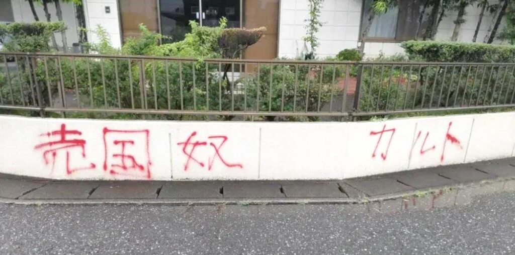 Featured image above: Graffiti damage at Ichinomiya Family Church. Photo: Family Federation