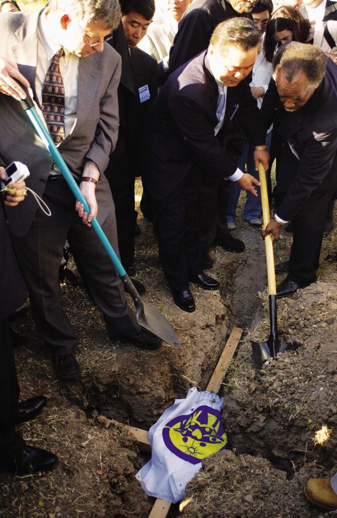 Once at the site, we found a grave had already been dug out by our Israeli Family Federation members, exactly the size of the cross. Several Bible quotes were read before the cross was lifted and then put in the ground forever. A family Federation flag, dated and signed by representative leaders was placed on top. A Jewish rabbi was the first to pray, followed by a Christian representative and a Muslim and finally Dr. Yang representing the third Israel and True Parents.