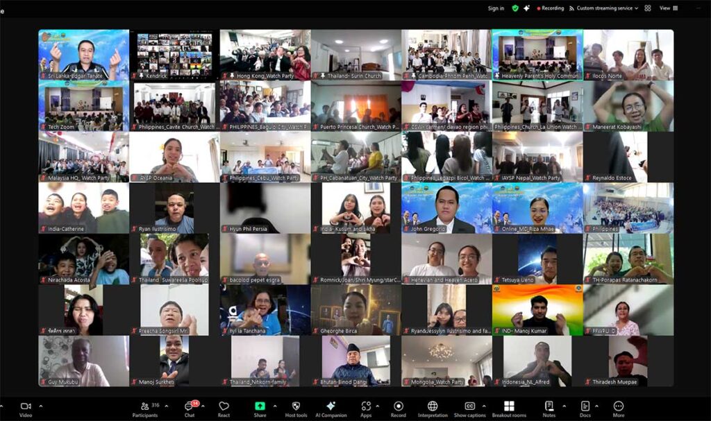 The 2025 Cheon Il Guk Youth Assembly, held on February 16, 2025, brought together over 5,000 participants, including 2,124 in-person attendees from 40 group watch parties across 21 nations in the Asia Pacific, along with 3,623 online participants via Zoom, YouTube, and Facebook Live. Organized by the FFWPU Youth Department of Asia Pacific, the assembly served as a condition to empower young people for a victorious entrance into Cheon Won Gung Cheonil Sanctum in April 2025. Guided by the principles of Faith, Unity, and Tradition as emphasized by True Mother, the event featured uplifting musical performances, heartfelt testimonies, and inspiring messages from key leaders, reinforcing the youth’s commitment to their faith and mission.
