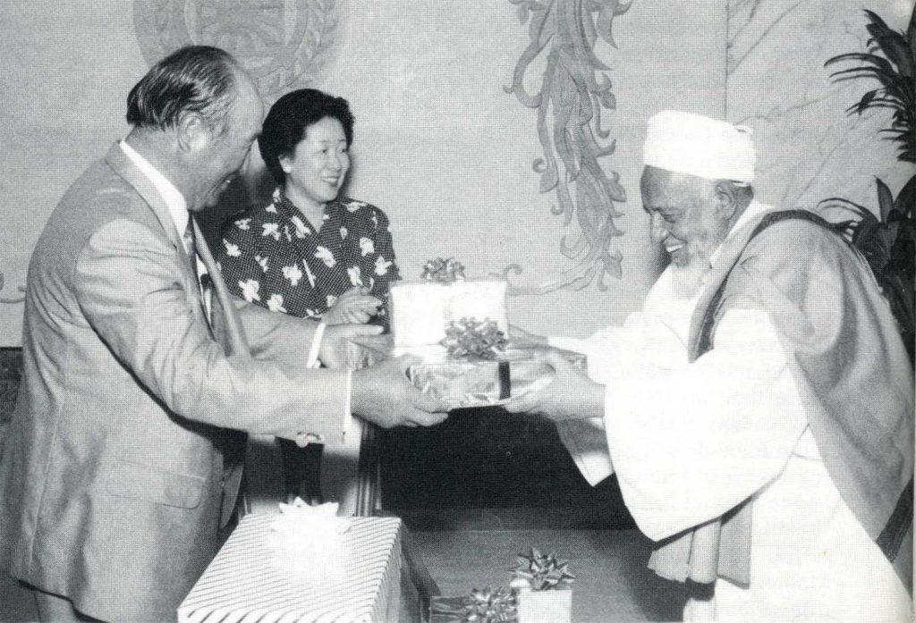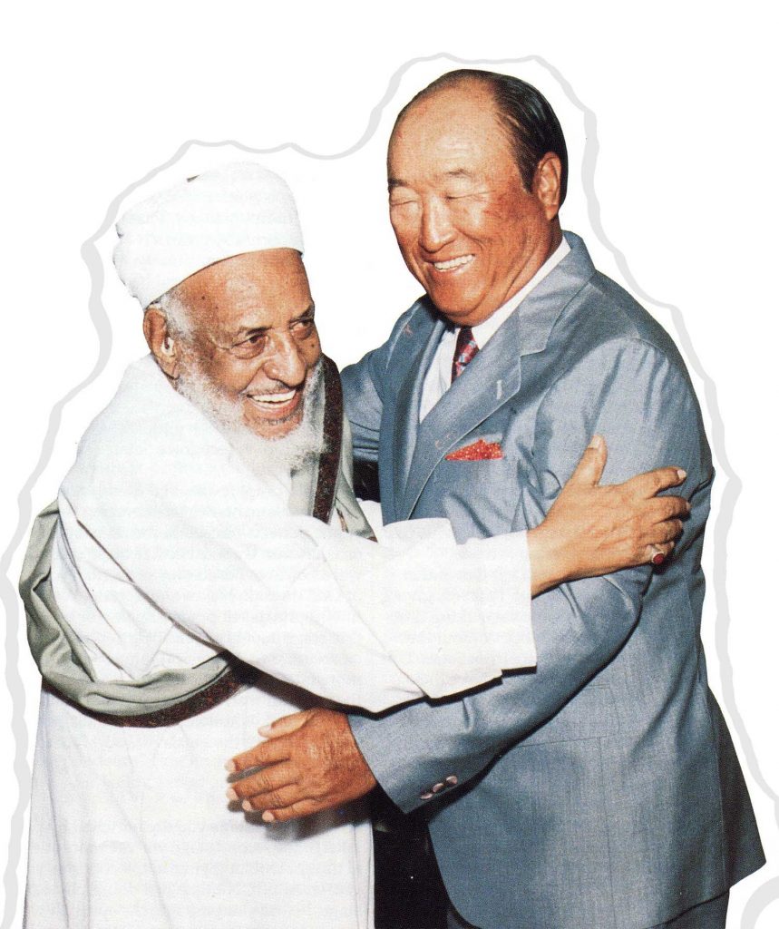 Although the Mufti is 84 years old, he has called Father “Father Moon” and Mother “Mother Moon.” He gave the title of “Sheik” to Fritz Piepenburg (the original missionary to Yemen, who arrived there in 1975), although this title is customarily conferred only upon men of high religious learning. Other times he has referred to Fritz as “my son.” At the United Nations Mosque, Grand Mufti Zabarah proudly announced to international diplomats that Reverend Moon had sponsored this conference.