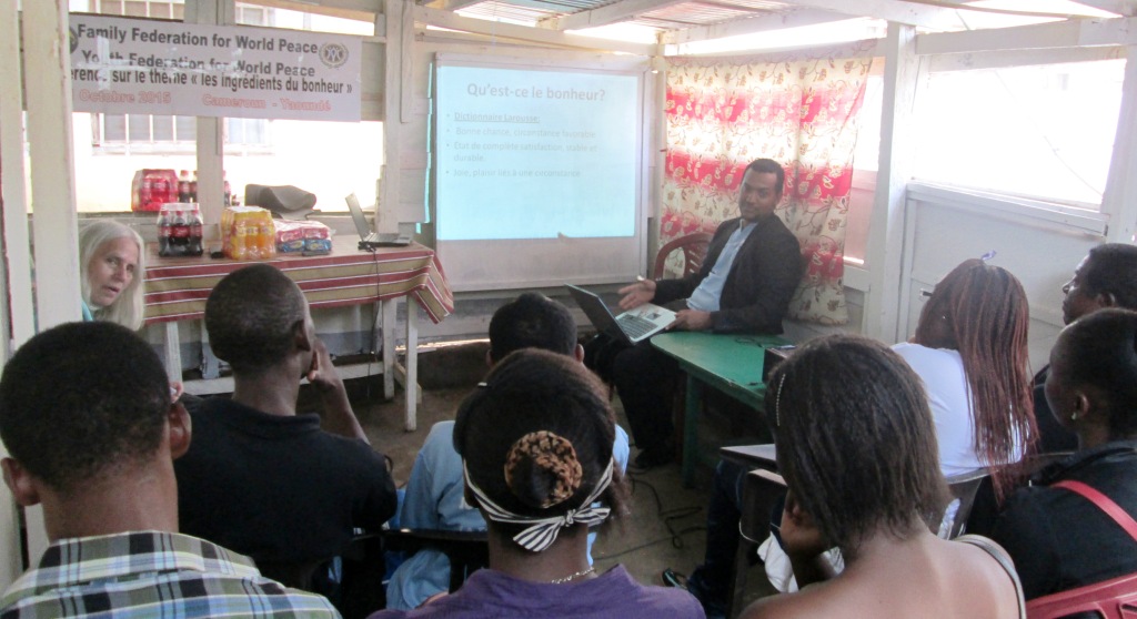 FFWPU Cameroon, Yaoundé: On the 31st of October 2015, the Home Church ”Quartuor” (4 families) of Mendong hosted a YFWP conference at the Kamga’s family house. The theme of the conference was ”The Ingredients of Happiness”. The teachings were an adaptation of the Principles of the Creation. We had 27 participants in total and 15 were new guests. .