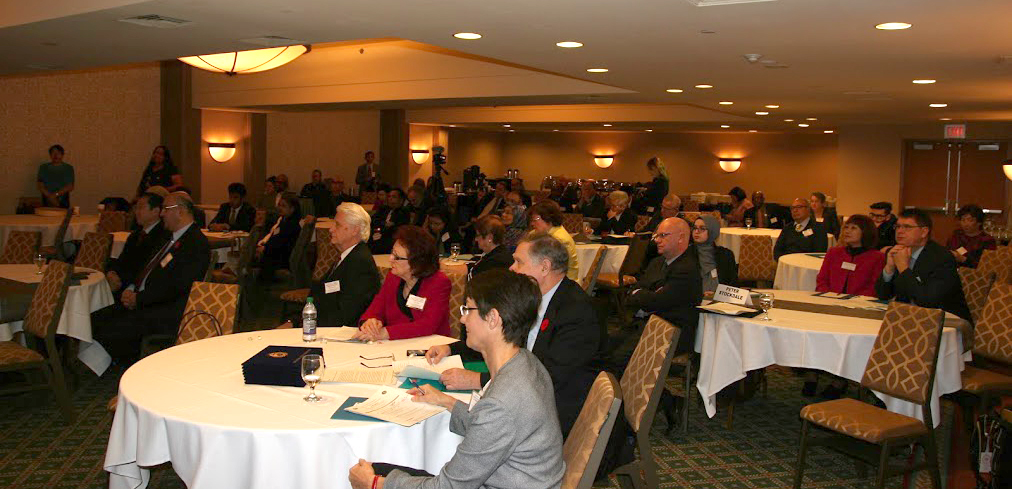 Ricardo de Sena, UPF North American Secretary General led the session with a presentation on a proposal for such a council at the UN as proposed by the late Rev. Moon in August, 2000. He was followed by international human rights consultant and educator, Dr. Karen Mock who approached the question from the viewpoint of one with a Jewish Heritage. She was followed by Mrs. Alexa Ward, deputy director of the UN Office of the Women’s Federation for World Peace. A Muslim view was provided by Ms. Shaheen Junaid Ashraf, a representative of the Canadian Council of Muslim Women. The concluding on this session were provided by Mr. Michael McIntyre, past president of the Capital Region Interfaith Council in Ottawa.