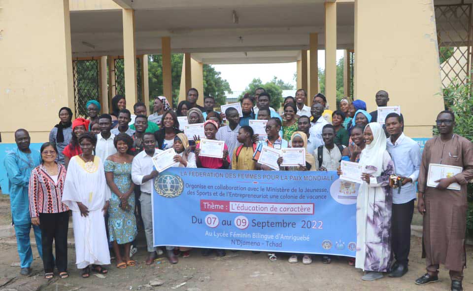 The topic about sexual purity and fidelity created a lot of discussion due to the fact that Chad legalized polygamy. The lecturers emphasize the ideals and the representatives contributed a lot to the discussions. On the third day the 12 chapters of the CE were taught completely. There was a review of the lectures, and rolled up by a conclusion that Peace can be achieve by “Living for the sake of others”. All participants were asked to write their Evaluations and Comments” on the distributed forms. Two students read in front of the television camera their gratitude to the WFWP and their recommendation to the government to support in disseminating the Character Education to the Youth all over Chad territory. It was followed by distributions Certificates of Attendance. Private national radio and Television were present on that culmination day. It was aired on the following day.