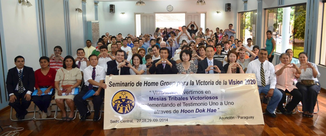 FFWPU Paraguay: Home group seminar for the victory of vision 2020 seminar was held in Paraguay on September 27~29. Rev. Seo Seong Jong who was assigned as a special envoy to Paraguay, prepared this seminar with sincere heart and did conditions for long time. First he had invited two families in the church headquarters everyday and he had done a face-to-face talk during two months. Also, after the second anniversary of Seong Hwa ceremony of True Father, he and his wife visited two blessed families everyday and thanked the two families for their hard work during the past years.