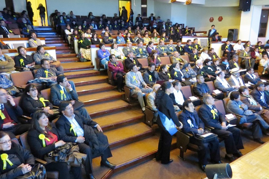 FFWPU Bolivia: Interreligious Meeting for the International Day of Peace, September 24, 2014, AESUCM-La Paz, there was the presence of religious leaders and Ambassadors of Peace. September 25, 2014, in the Communications Center Building of La Paz, the main event was held to mark the International Day of Peace. There was the lecture presentation of the President of the AESUCM-Bolivia, about the “Vision of Father Moon Need for Interreligious Council at the UN.” Three hundred participants from different areas of society attended the event, the religious leaders gave some celebration quotes on the International Day of Peace, the various religious leaders were representing Judaism, Buddhism, Christians and Catholics participated in the Interfaith Ceremony for Peace. The Holy water ceremony was also part of this event; the religious leaders expressed their intention for Interfaith Harmony. Each religious leader offered a prayer for World Peace and a FPU-Bolivia proposed to combine efforts and work cooperatively for peace. The responsible person of the AESUCM -Tarija, recited the poem “Crown of Glory”, which made the participants shed tears. Participants were very grateful to participate in this event.