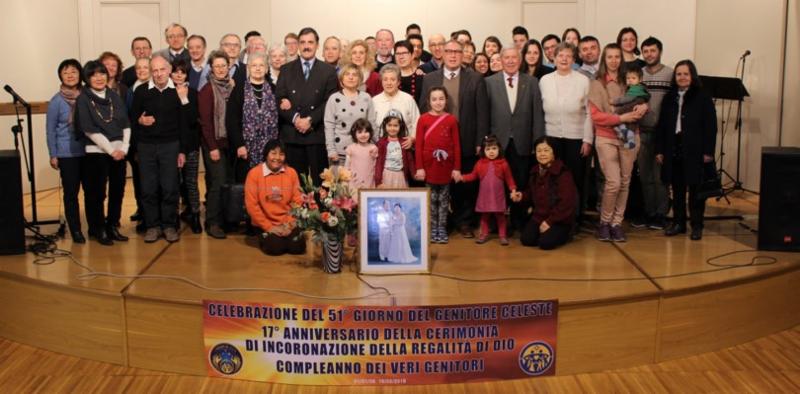 On Sunday February 18, 2018, the community of Bergamo met in the polyvalent / auditorium theater of Orio al Serio (Bergamo) to celebrate the 51st Day of the Celestial Parent, the coronation ceremony of the Kingship of God, the birthday of the True Parents.