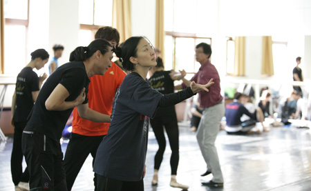 Julia Moon, center-right, instructs dancers of Universal Ballet during a rehearsal. / Courtesy of Universal Ballet Company