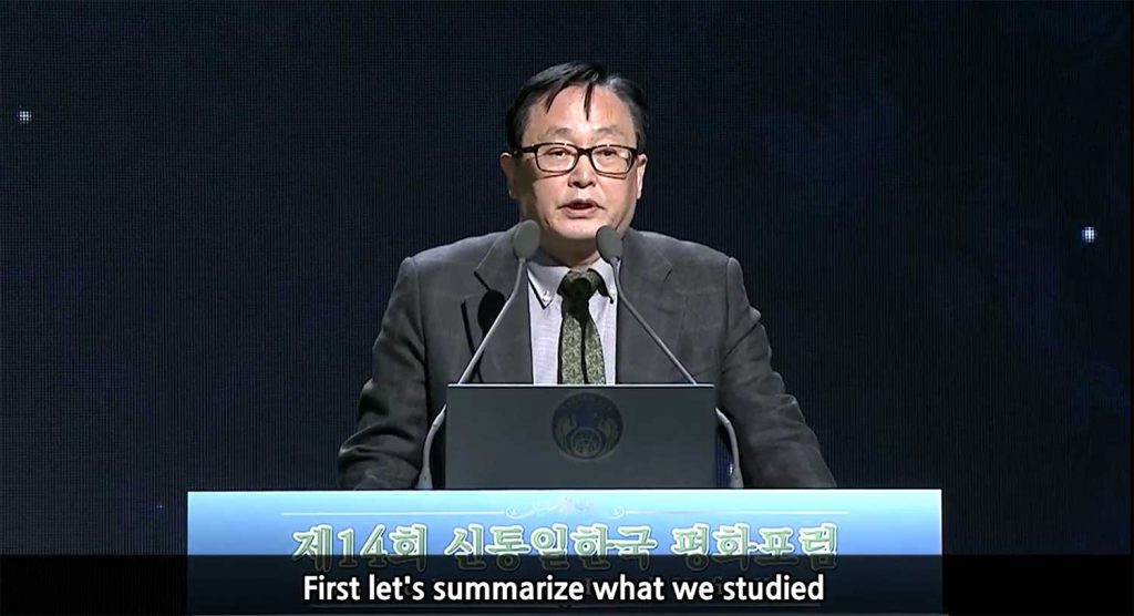 … the fundamental frame of liberal democracy and socialism is internal nature and external form based on the Shimjeong that we talk about in principle. It’s just a confrontation, a struggle, a contradiction based on that. In order for the value of internal nature and external form to be basically unified, you have to focus on your Shimjeong. The unity of liberal democracy and socialism can only be realized based on Godism, which is fundamentally based on the values of the mind. This is the Heavenly Unified Korean national ideology.