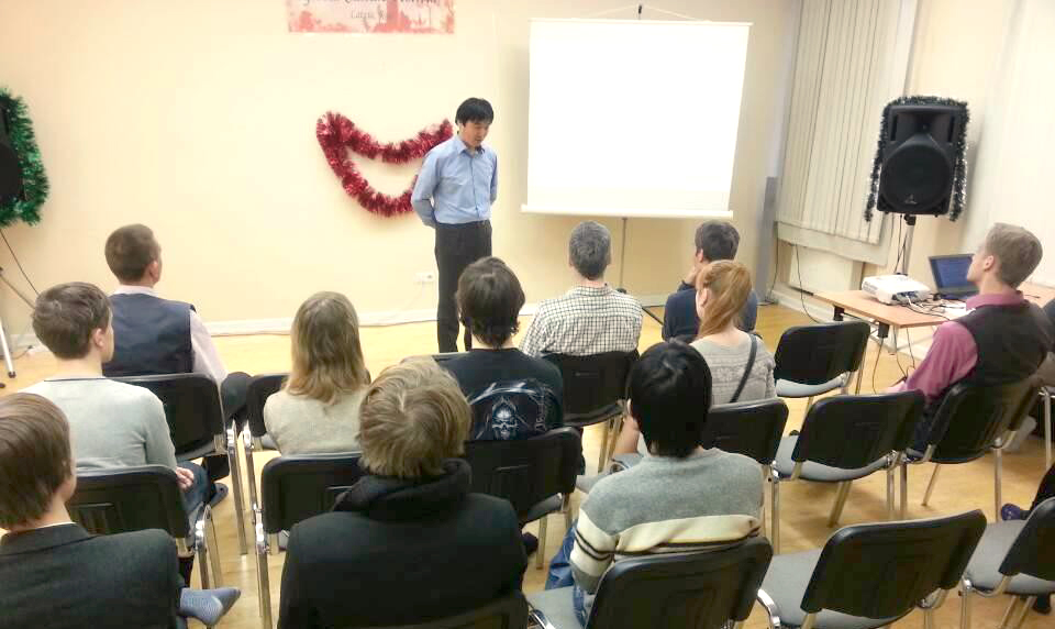 FFWPU Latvia: The 10th Festival of Global Culture was held in Riga, Latvia, at the Peace Embassy, on December 20, 2014. Activists of the Universal Peace Federation, Japanese missionaries and seven new guests attended the event. One guest decided to take part in the 7-days seminar which will take place in Antalya, Turkey. He came to the headquarters of the UPF in Riga, to learn about the Divine Principle, and as a result decided to go to the seminar in Antalya. Interesting programs inspire and draw us closer. Dr. Ando, the national leader in Latvia, gave a short lecture about the Give-and-take Action. Participants were deeply inspired by the Divine Principle.