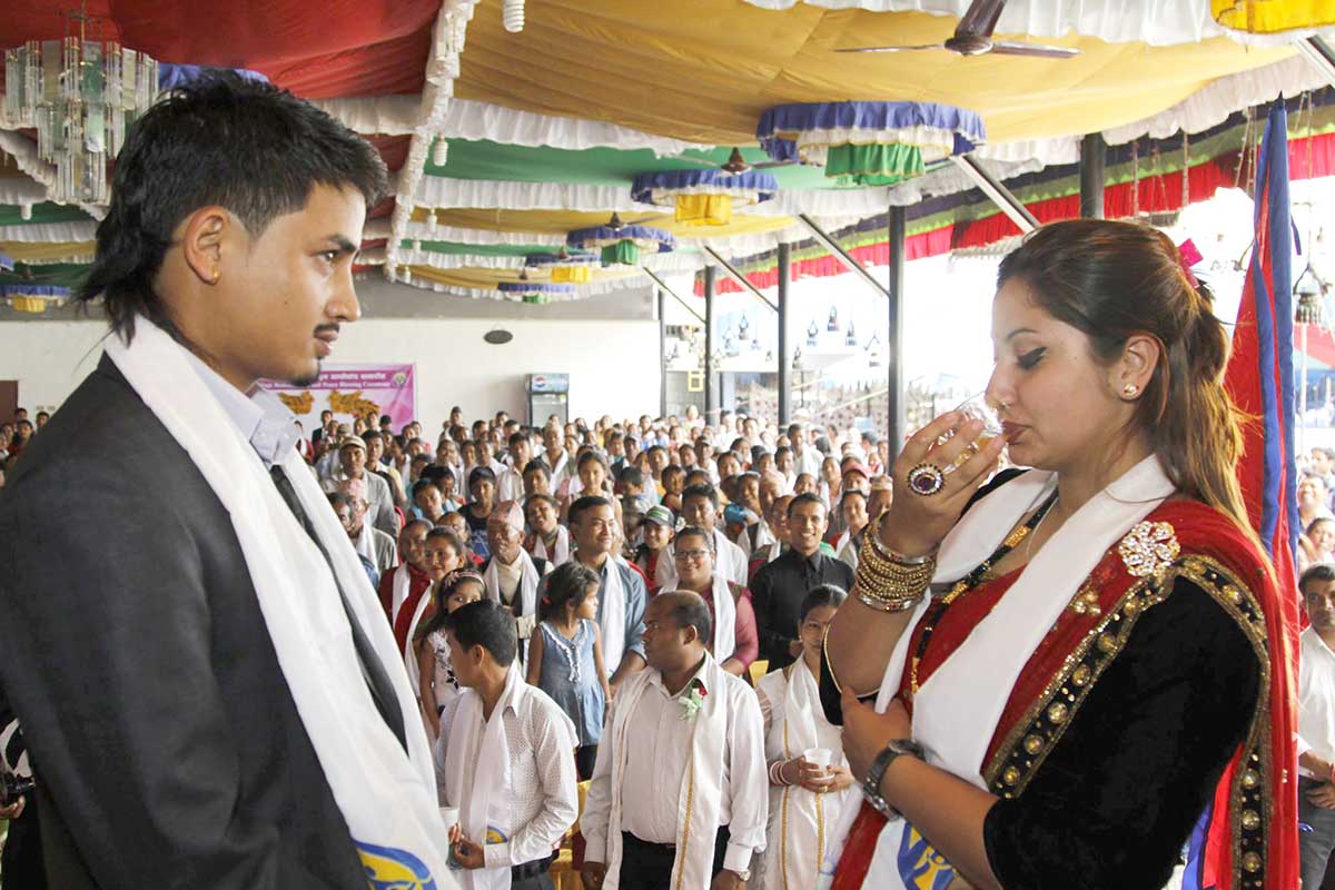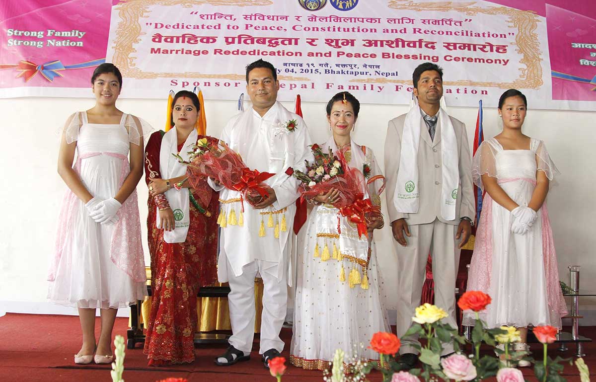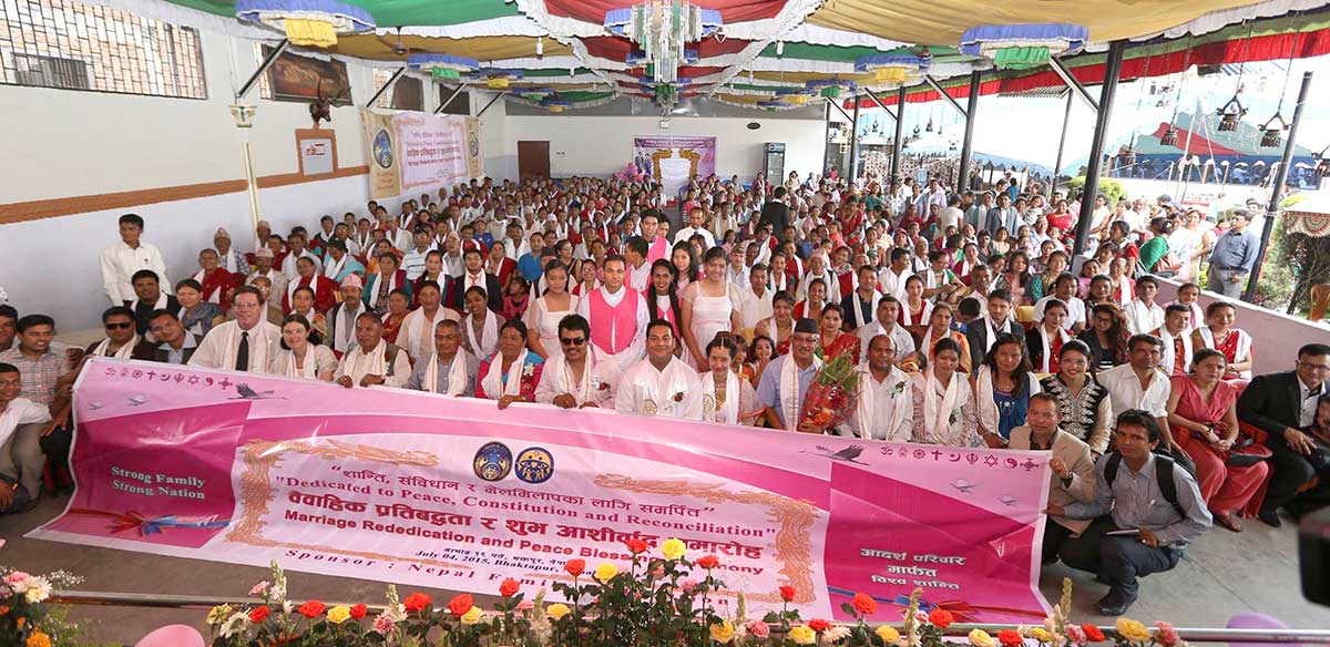 We successfully organized a Marriage Re-dedication and Family Peace Blessing Festival in Sankadhar Party Palace, Bhaktapur on July 4, 2015 attended by 422 couples. And there were around one thousand guests who came either as couple or along with their spouse pictures.