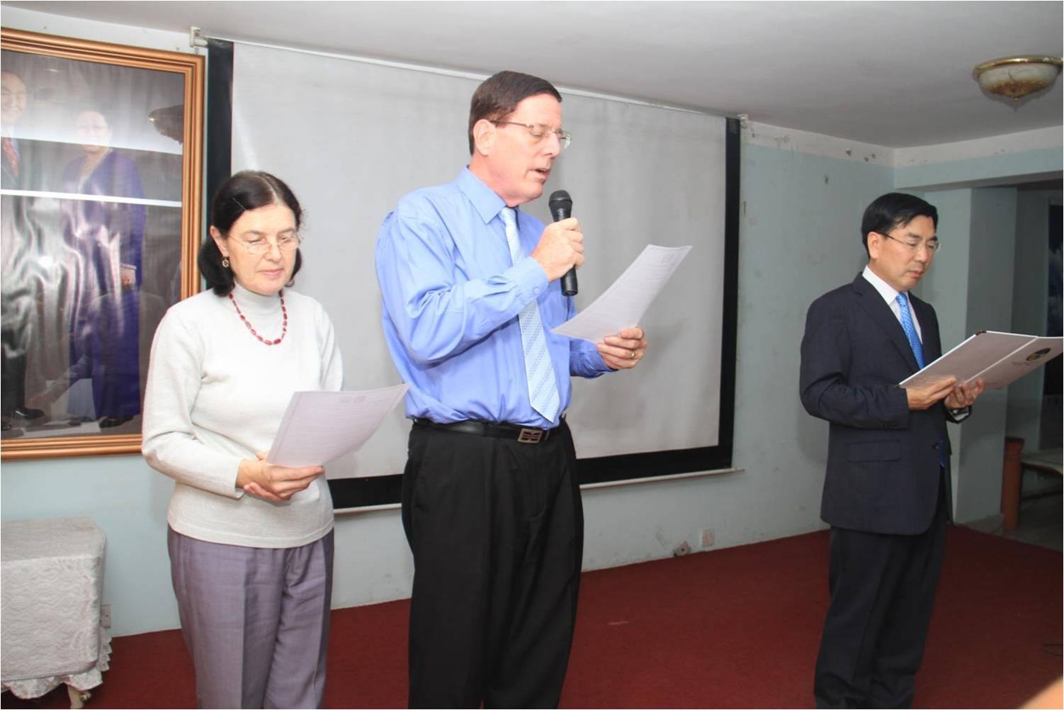 The fire of Heavenly Tribal Messiah was lit in the hearts of God’s filial sons and daughters in Nepal. 92 Cheon Il Guk leaders graduated. This was 2-day lecture training workshop, Dr. Yong personally handed out graduation certificates to each person. Lecture training focused on two presentations: “Heavenly Tribal Messiah Blessing Education” that focused on teaching the meaning and value of the Blessing. “Good Families (key) Prosperous Nepal” which taught the importance of purity before marriage and concluded with the Pure Love Pledge, Dr. Robert Kittel, Special Cheon Il Guk Emissary, and Kashi Nath Khanal, National Lecturer, prepared the PowerPoint presentations. Dr. Kittel gave the lecture training. Mr. Khanal gave practical aspects related to the Blessing, Hoon Dok Hae.