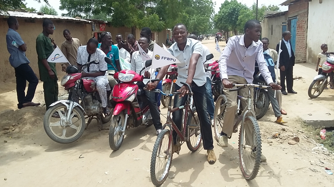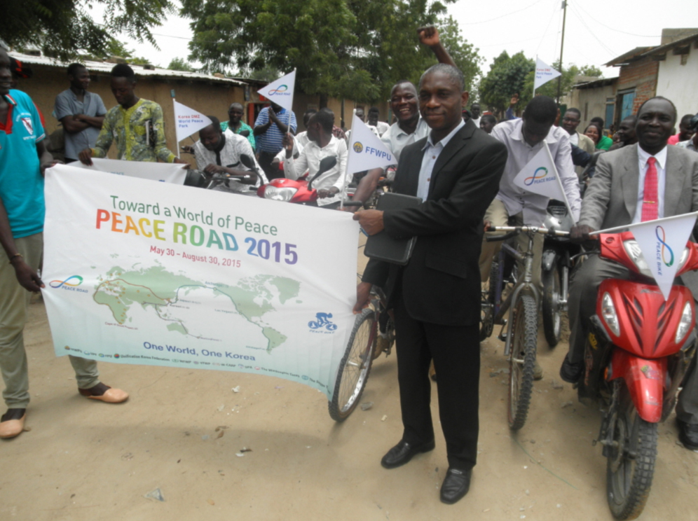 FFWPU Chad: We held a symbolic Peace Road event due to the political situation on August 23, 2015 in Ndjamena, capital city of Chad with 30 participants. We had bikes motorbikes ridding for nearly 1 Kilometers just in front of the national Church Headquarters.
