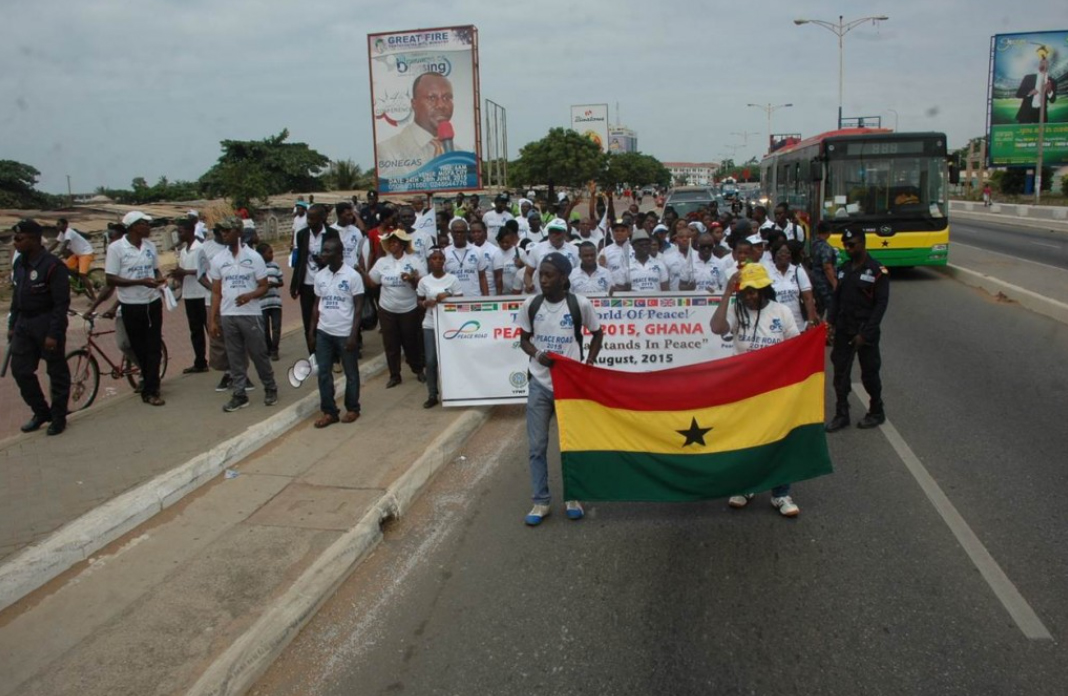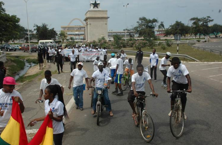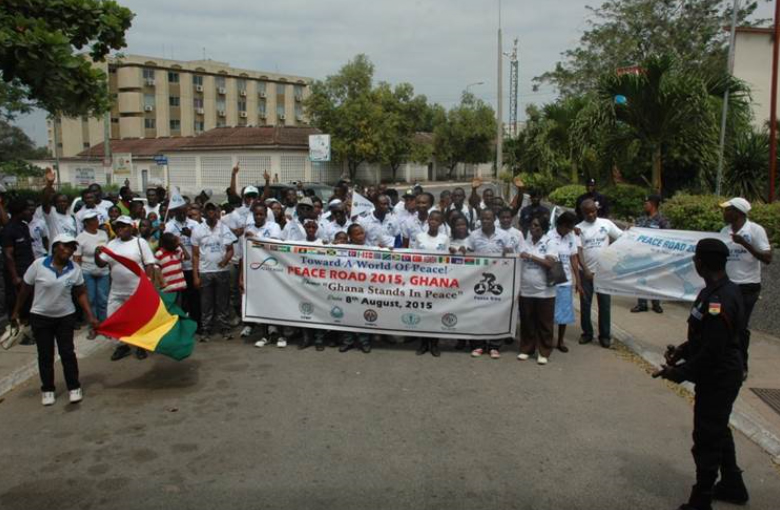 On 8th June, 2015, 120 ambassadors for peace and other guests of other providential organizations participated in Peace Road 2015 with the theme: Ghana stands in Peace. The event started at the Arts Centre and ended at the Accra Sports Stadium amidst singing and dancing to renditions of brass band chorals. Although the route was quiet short, the march was very significant as the 28th February Street, has a history connected to the independence of Ghana.
