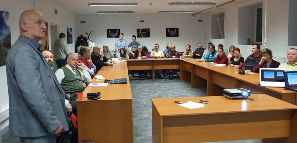 Finally, we found a lecture hall in the city centre. Our small team worked tirelessly to inform and invite the public. We were happy to greet 40 participants. The audience was treated to a demanding two- hour lesson spiced with exciting statements. UPF general secretary Milos Klas had done an excellent job by translating 40 slides from German into Slovak in advance. Some guests took diligently notes; one lady spontaneously applauded several times to statements of the lecturer. One sociologist was so moved that he asked permission to take home a poster as memento. One of the guests was the Russian attaché who bought the exhibited book “March to Moscow”.