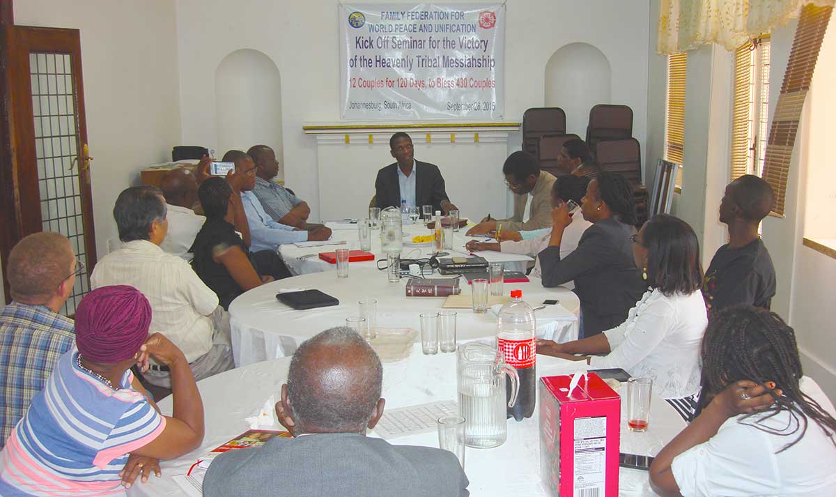FFWPU South Africa, Rev. Jean Augustin Ghomsi, September 26, 2015: We acknowledge the presence of National Leaders of Swaziland (Rev. Jean Mensah Noumonvi) and Lesotho (Rev. Darkwell Sakala), the Vice-National Leader of Mozambique (Ms. Esperanza Sumbane) as well as the Vice-National Leader of Swaziland (Ms Sabina Makhanya) and the Head of the Financial Department of Mozambique.