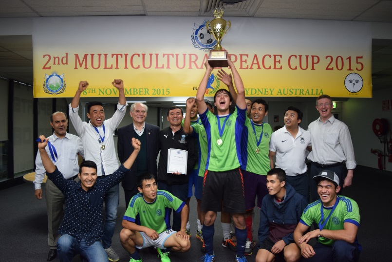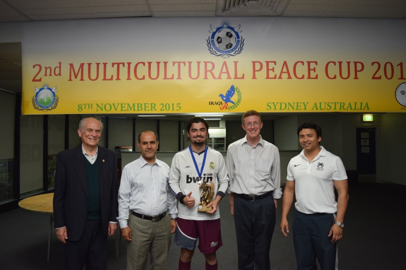 The event was sponsored by UPF however three organizations, Iraqi Renaissance, Sydney Friendship Group as well as UPF, came together to organize it. It was a knockout completion with the winning team retaining the impressive Multicultural Peace Cup. Trophies for “best player” and best “sportsman” were also awarded. Councilor George Campbell from the Auburn City Council came along to give congratulatory remarks and to help present the awards.