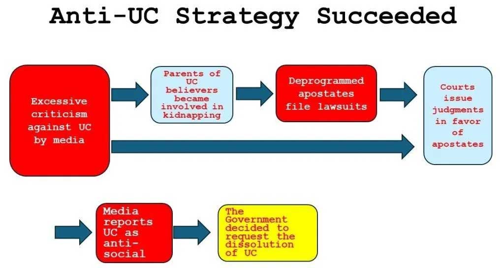 - Parents of Unification Church believers became worried and got involved in kidnapping their adult children. Deprogrammed apostates filed lawsuits against the Unification Church. The courts, deeply influenced by the media coverage, issue judgements in favour of the apostates.