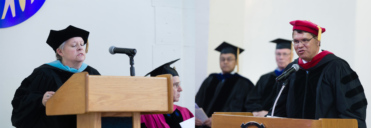 “These new windows in the chapel are not only here to let the light come in, but to let the light go out,” said Dr. Michael Balcomb, President of the Family Federation for World Peace and Unification USA who gave the commencement address. Balcomb invoked the vision of Rev. Sun Myung Moon, founder of UTS, quoting from his speech in which the Founder compared himself to a lighthouse keeper. “No one pays attention to a lighthouse during the day, and especially today when the night is thoroughly lit by a false sun. The lighthouse keeper may be mocked and disregarded, but that is exactly why we are here today,” Balcomb exhorted the graduates in the newly renovated chapel lit by 16 new plate-glass windows.